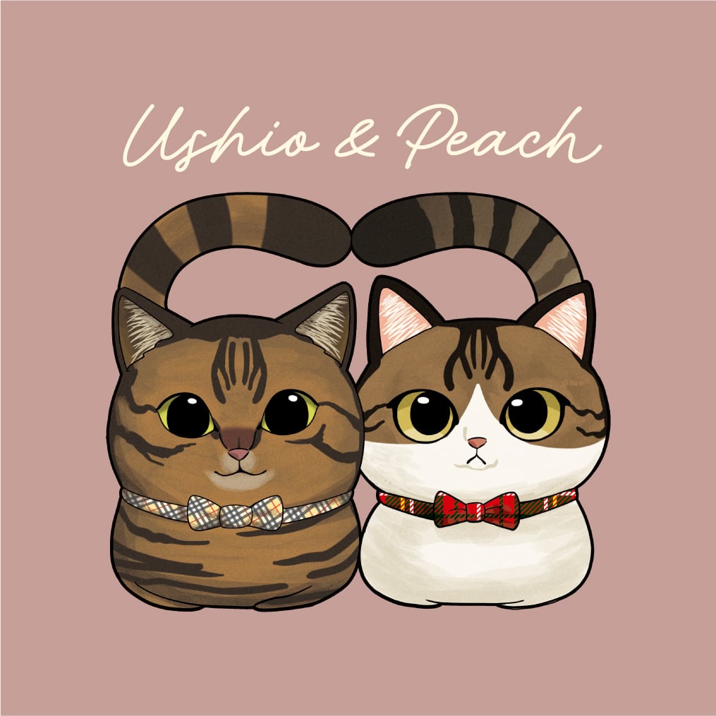 仲良く並んだうしおとピーチのイラストがやさしい雰囲気を演出。